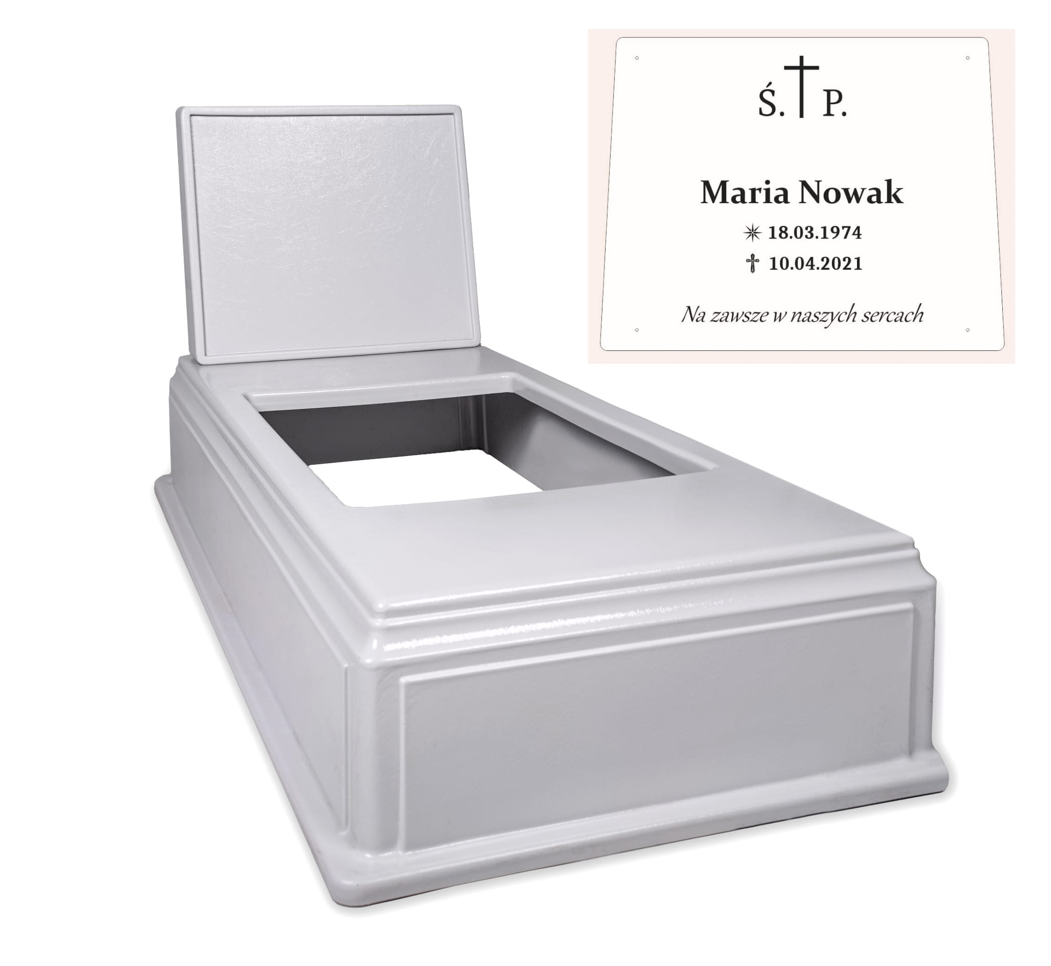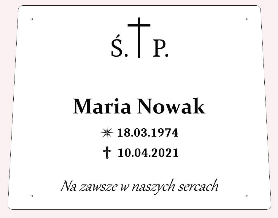 Pomnik plastikowy MEMENTO w kolorze szarym + tablica biała z danymi osoby zmarłej